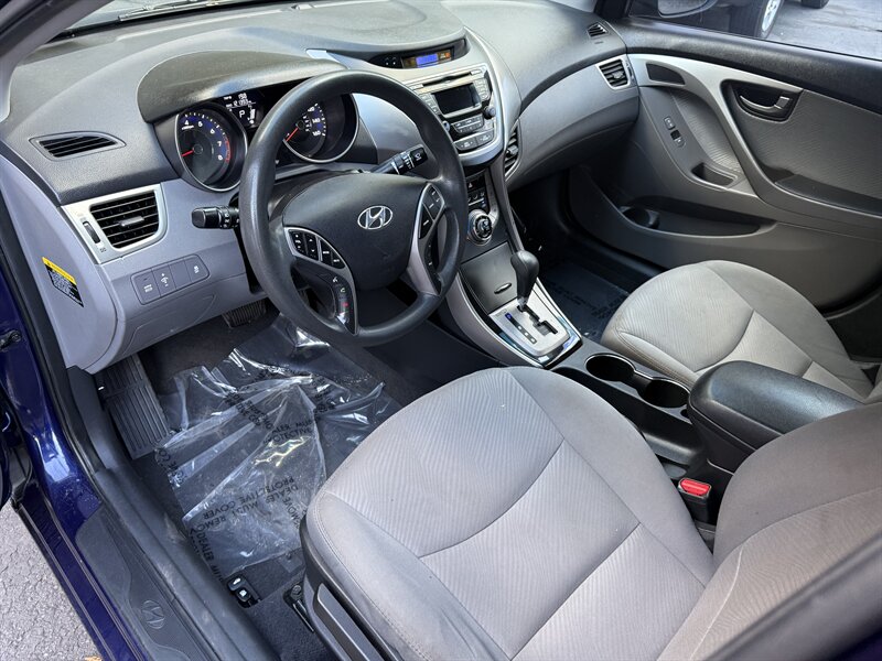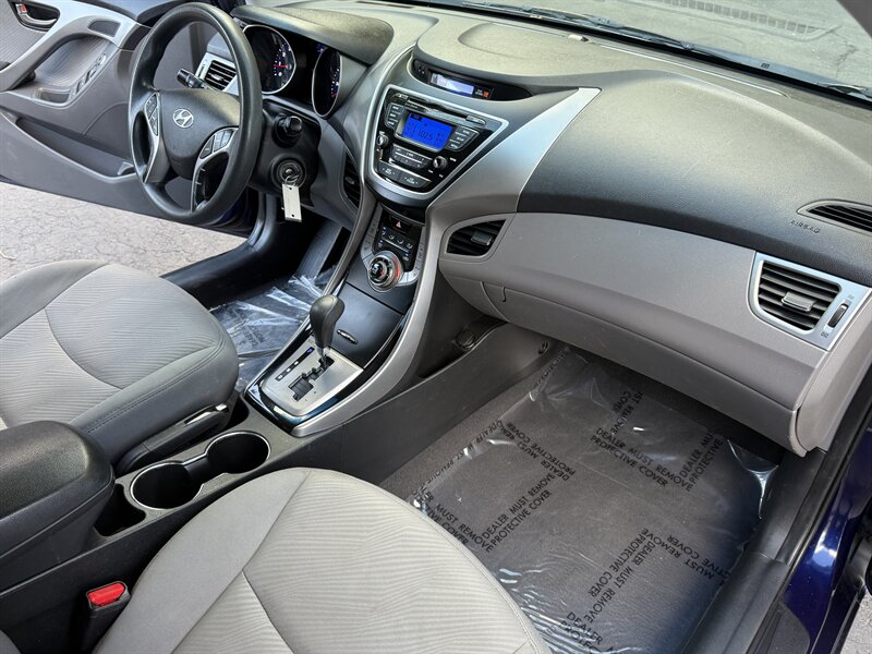 2013 Hyundai Elantra GLS, a stylish and efficient compact sedan that combines performance with comfort. This vehicle is powered by a 1.8L I4 engine, delivering 148 horsepower and 131 lb-ft of torque, ensuring a spirited driving experience. With a striking Indigo Blue Pearl exterior and a sophisticated Gray interior, the Elantra boasts a modern design that stands out on the road.