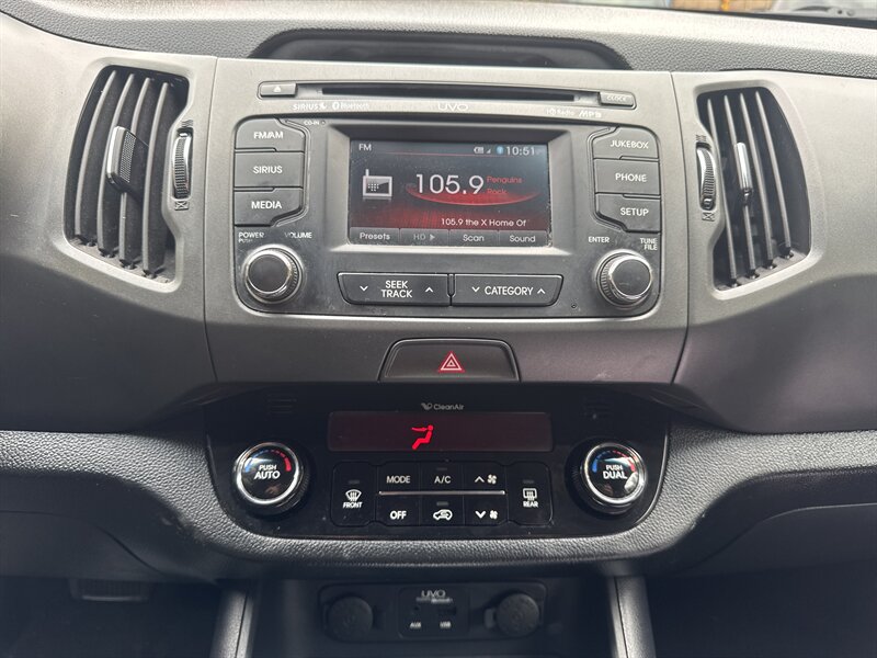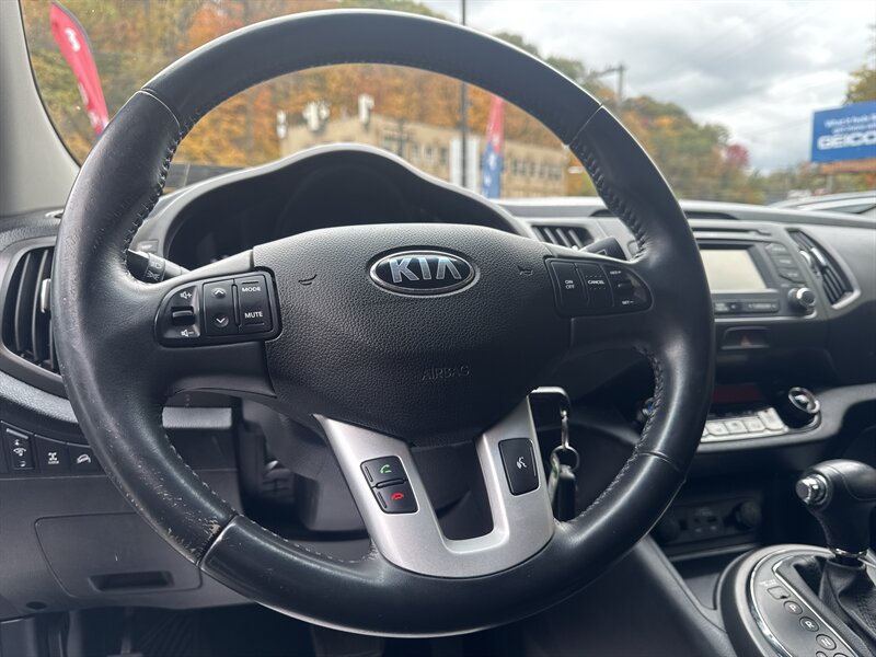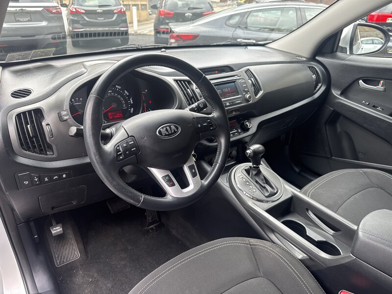 2013 Kia Sportage EX, a well-maintained SUV that combines performance and style. Powered by a robust 2.4L I4 engine, delivering 176 horsepower and 168 ft-lbs of torque, this Sportage offers a spirited driving experience. With a striking Mineral Silver exterior and a sleek Black interior, it exudes a modern aesthetic.