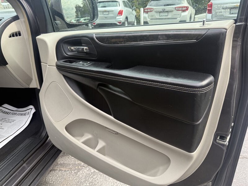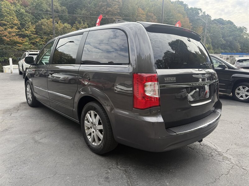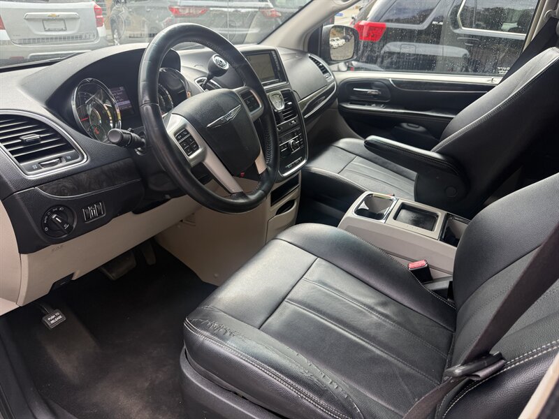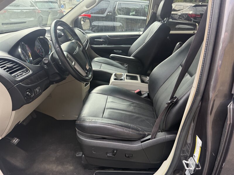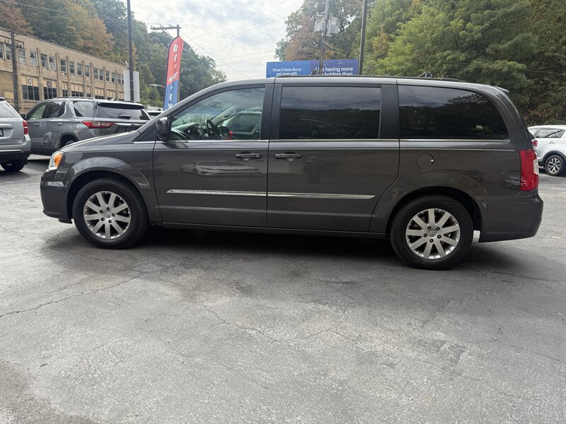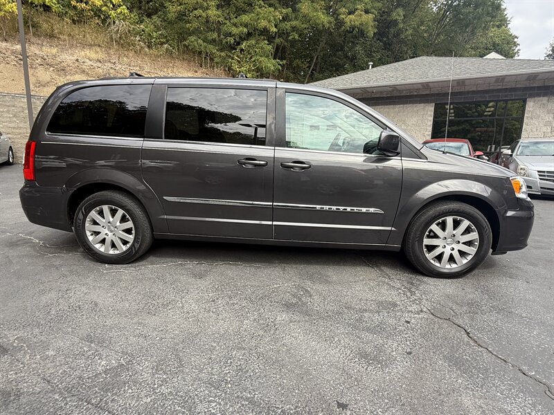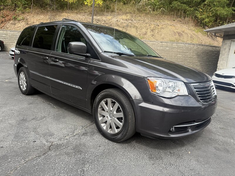 2015 Chrysler Town & Country Touring in Gray with a Black interior. Powered by a Pentastar 3.6L FlexFuel V6 producing 283 hp and 260 lb-ft, paired with an automatic and front-wheel drive. Factory equipment includes Stow ’n Go second- and third-row seating that folds into the floor, tri-zone automatic climate control, power windows and locks, remote keyless entry, cruise control, steering-wheel audio and phone controls with Bluetooth, AM/FM/CD audio with Uconnect infotainment, multiple airbags, ABS, electronic stability and traction control, and tire pressure monitoring. This vehicle has nder 90,000 miles (averaging less than 8,000 miles per year).
