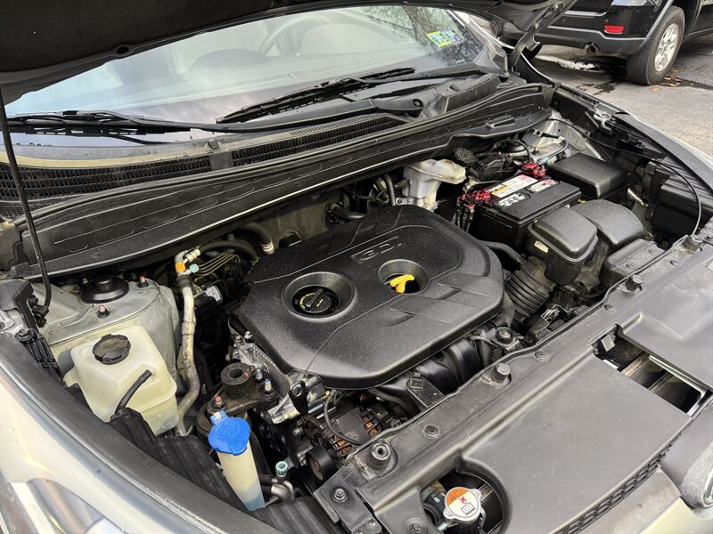 2015 Hyundai Tucson GLS in Diamond Silver with a Black interior, powered by a 2.0L I4 producing 164 hp and 151 lb-ft of torque. This example has under 86,000 miles (averaging less than 8,000 miles per year) and returns an EPA-estimated 21 mpg city / 25 mpg highway. Factory-standard equipment includes an automatic transmission, cloth seating, 60/40 split-folding rear seat, air conditioning, cruise control, tilt/telescoping steering column, power windows and locks, remote keyless entry, Bluetooth hands-free and audio streaming, USB/AUX inputs, steering-wheel audio controls, and an AM/FM audio system. Standard safety features include ABS, electronic stability control, traction control, front and side-impact airbags with full-length curtain airbags, and a tire pressure monitoring system.