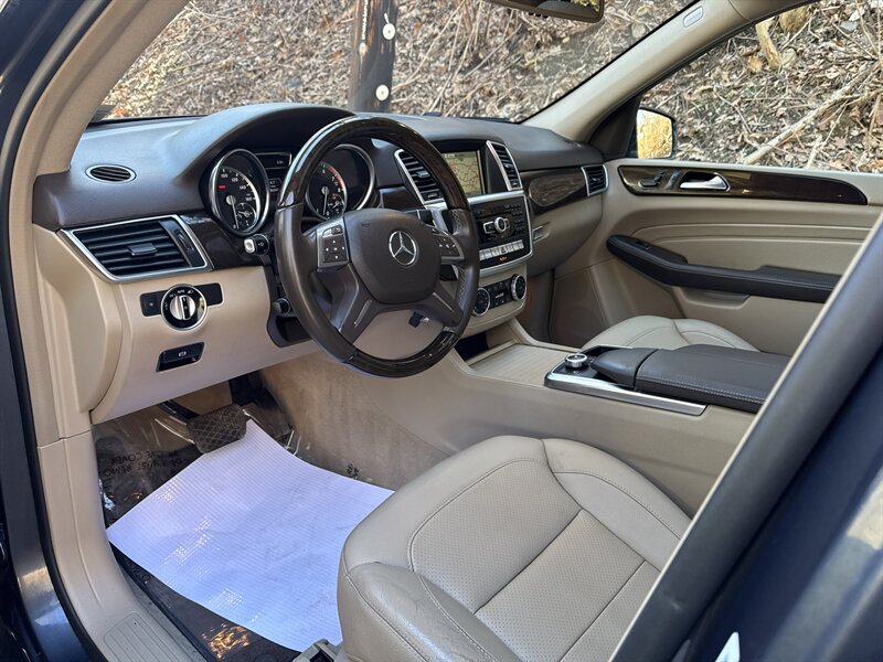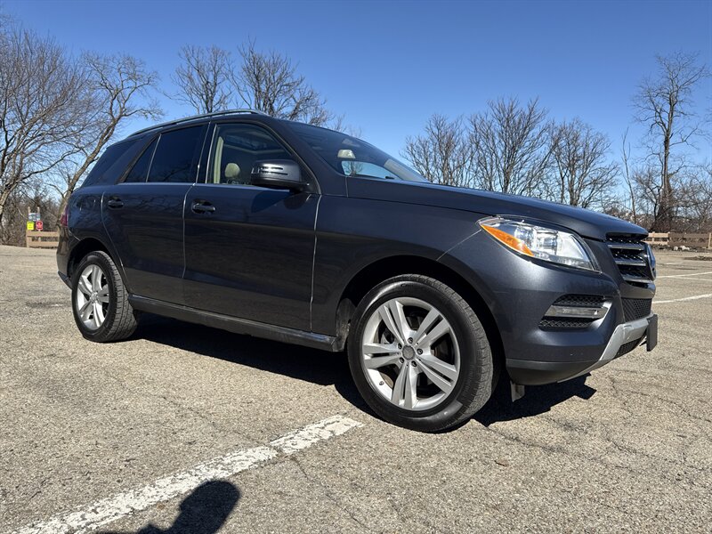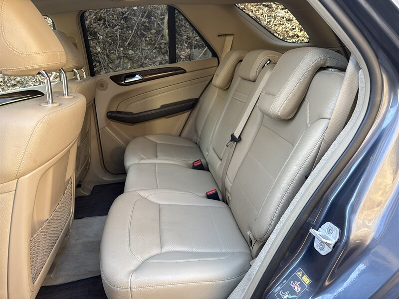 2015 Mercedes-Benz ML 350 4MATIC in Steel Grey Metallic with Almond Beige/Mocha interior, powered by a 3.5L V6 producing 302 hp and 273 ft-lb, automatic and full-time 4MATIC all-wheel drive. Well maintained with under 87,000 miles (averaging less than 8,000 miles per year) and EPA ratings of about 17 MPG city / 22 MPG highway.