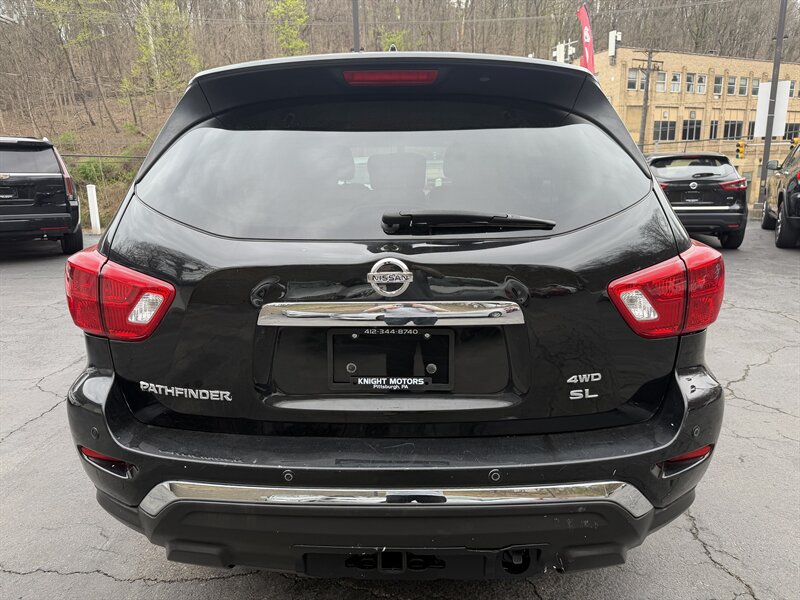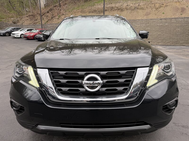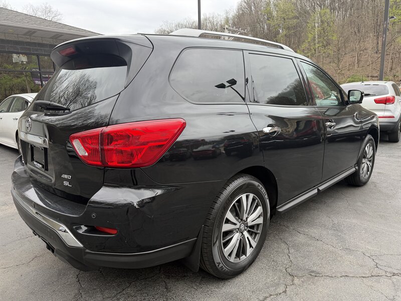 2017 Nissan Pathfinder SL in Magnetic Black with Charcoal interior, powered by the 3.5L V6 (284 hp, 259 lb-ft). This well-maintained example has below 96,000 miles (averaging under 10,000 miles/year) and EPA ratings of 19 MPG city / 26 MPG highway.