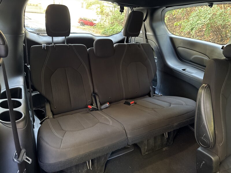 This Pacifica is equipped with a comprehensive array of factory default features, including a user-friendly Uconnect infotainment system with a large touchscreen display, Bluetooth connectivity, and a premium audio system for an enhanced driving experience. Comfort is prioritized with heated front seats, tri-zone automatic climate control, and ample cargo space, making it ideal for family adventures.